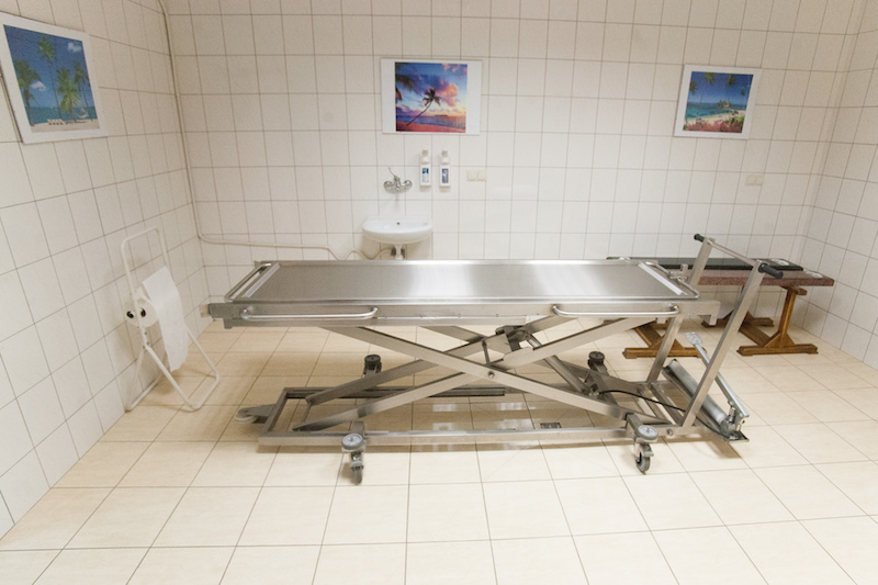Stół przeznaczony jest do wykonywania zabiegów związanych z sekcją zwłok, pobierania próbek narządów, może być także używany jako stół do balsamacji, toalety pośmiertnej oraz ubierania zwłok. Na wyposażeniu pomieszczenia jest także lampa bezcieniowa, niezbędna to wykonywania kometki pośmiertnej, toalety pośmiertnej, wizażu pośmiertnego, tanatoplastyki oraz tanatolgii. Nasi pracowni są przeszkoleni oraz posiadają wymagane certyfkitaty, które umożliwiają im profesjonalną pracę z ciałem osoby zmarłej.
